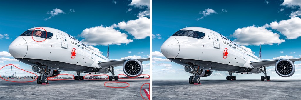 I removed everything from the horizon line as well as the line in the bottom right corner and fixed the reflection on the front window.