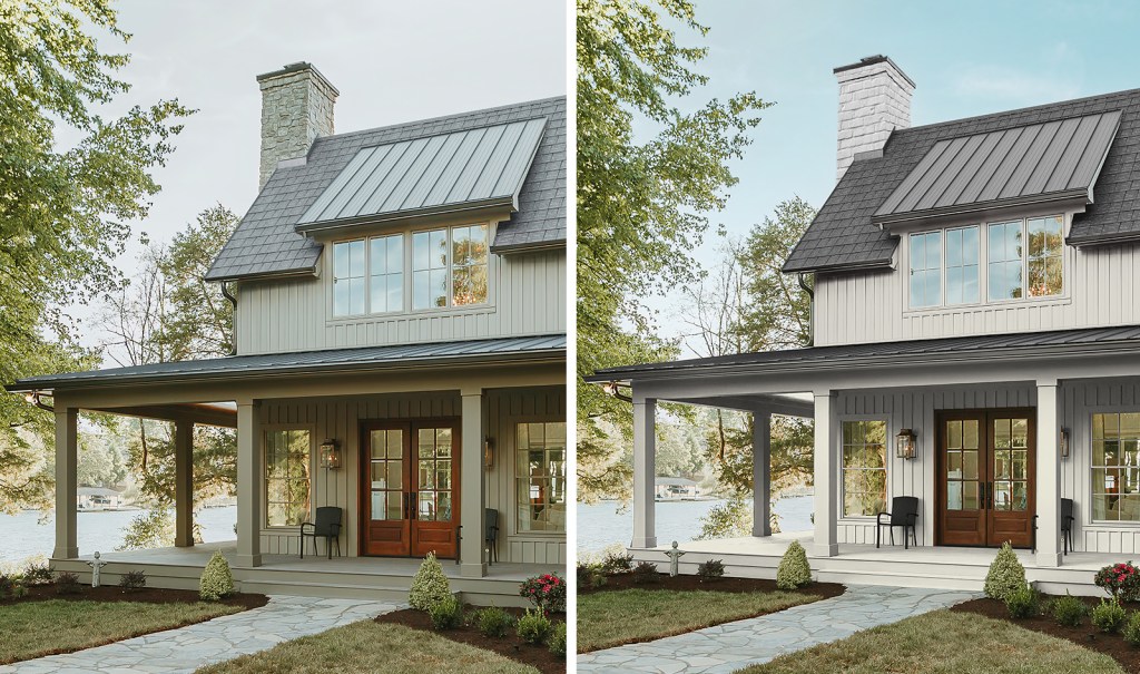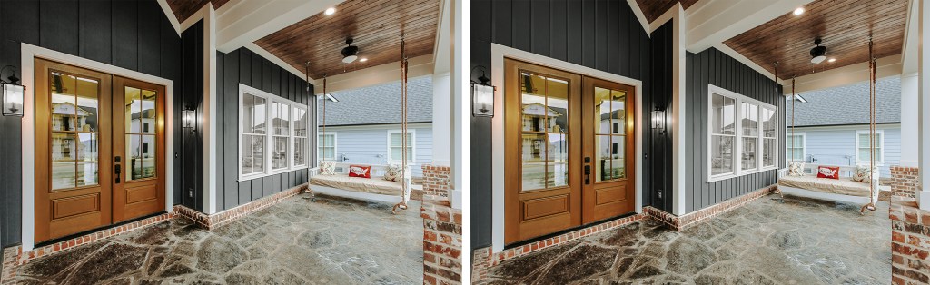 I changed the colour of the house. This involved a lot of masking and colour correcting other elements of the house such as the doors and windows. I also changed the sky.